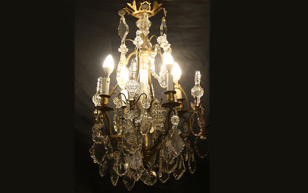 XIXth hand-cut crystal pendants, pinnacles and central part in molded crystal