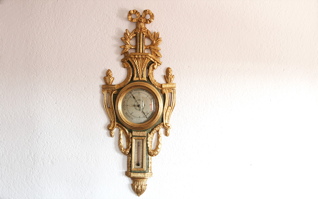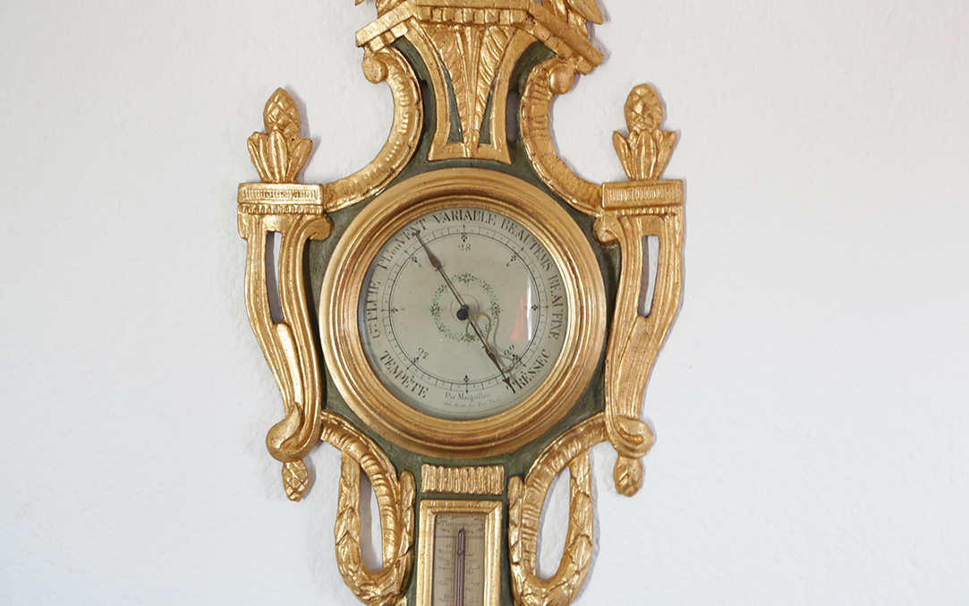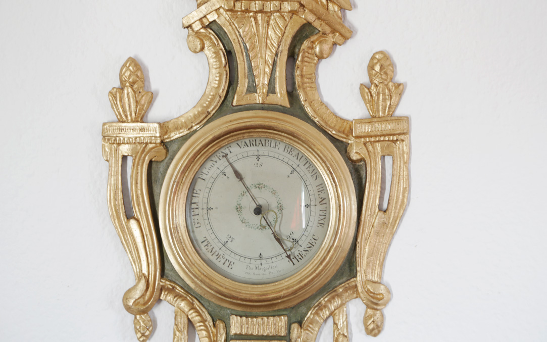 Complet, vitre, aiguille, thermomètre et tube de mercure du baromètre