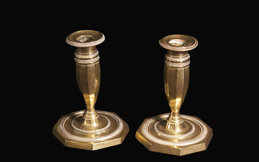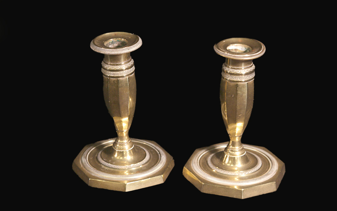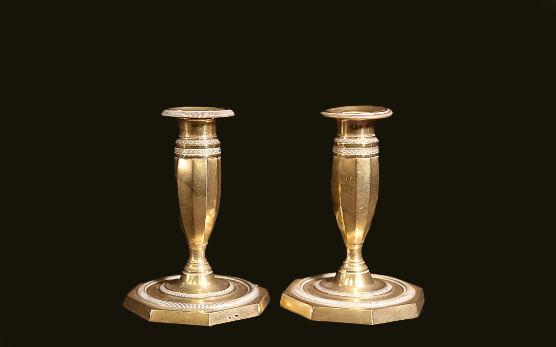 Bougeoirs (230€)borismarvier2026-03-09T16:43:57+01:00 Paire de bougeoirs : Paire de petits bougeoirs Bronze Fin XVIIIe début XIXème siècle Directoire Bon état Diamètre de la base : 9,5 cm Hauteur totale : 13,5 cm Toutes livraisons, envoi soigné avec assurance Visible dans notre magasin d’Issigeac Revenir au cataloguePrix : 230 € EMAILborismarvier@gmail.comTEL (+33) 05 53 58 79 22 FIND US Issigeac, France