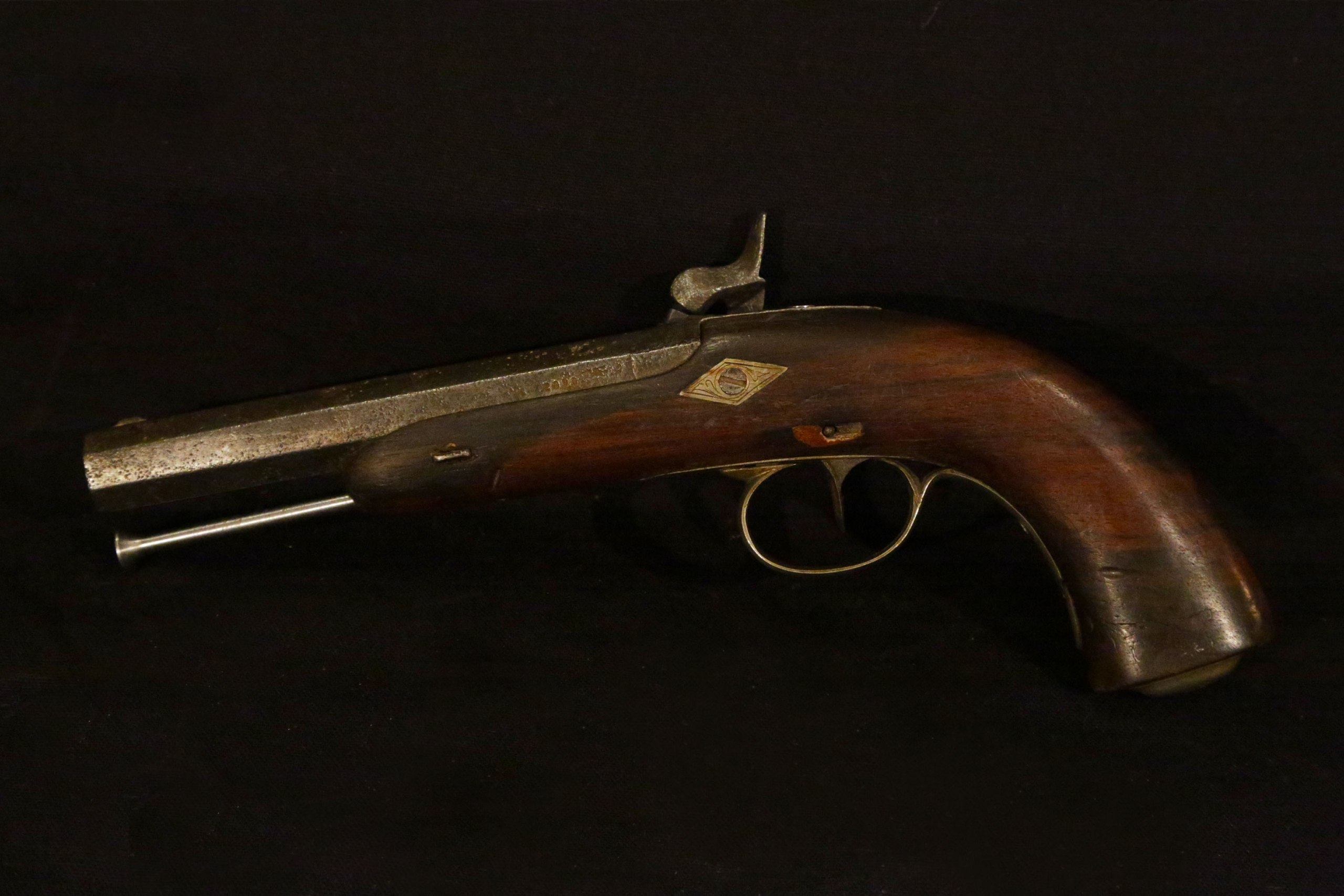 pistolet d’Arçon (680€)borismarvier2021-04-28T12:30:58+02:00 Project Description pistolet XIXème siècle : Pistolet d’arçon Début XIXème siècle modifié en percussion à partir de 1822 Baguette de bourrage récente, le chien ne tiens pas Cannon: 15 cm Visible dans notre magasin d’Issigeac Revenir au cataloguePrix : 6800 € Epoque : XIXème siècle Etat : Bon état Longueur : 28cm Longueur du canon : 15cm EMAILborismarvier@gmail.comTEL (+33) 05 53 58 79 22 FIND US Issigeac, France