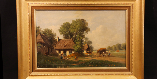 borismarvier2026-01-12T16:32:09+01:00huile sur panneau : Paysage naturaliste Huile sur panneau de bois Cadre en bois et stuc doré XIXème siècle Bon état général, quelques manques sur la partie basse du panneau de bois Cadre en très bon état, de qualité Hauteur : 49 cm Largeur : 41 cm Épaisseur : 7 cm Dimension de [...]