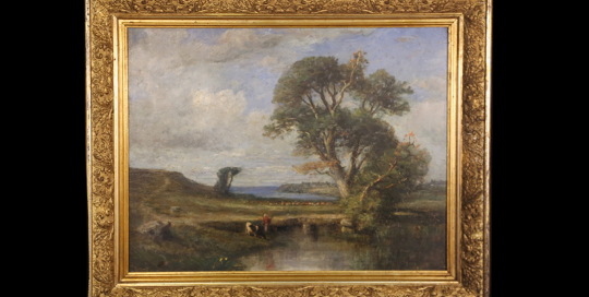 borismarvier2023-09-06T16:38:41+02:00école de Barbizon : Huile sur panneau Vue du pont de Juiré près de Concarneau, Finistère, (Nord-Ouest France)Très bon étatÉcole de Barbizon, XIXème siècle Cadre en bois et stuc doré, les côtés du cadre ont été recoupésHauteur : 64 cm Largeur : 78 cm Peinture seule : 50 x 65 cm Toutes livraisons, envoi soigné [...]